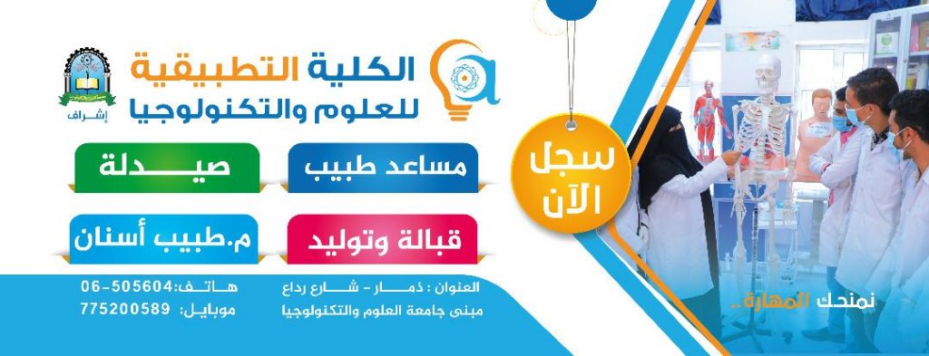 سجل_الآن_بالكلية_التطبيقية_للعلوم_والتكنولوجيا-ذمار برامج الكلية: صيدلة. مساعد طبيب أسنان. مساعد طبي عام. قبالة وتوليد. #انتهز_الفرصة واحجز مقعدك الان فالمقاعد محدودة…
