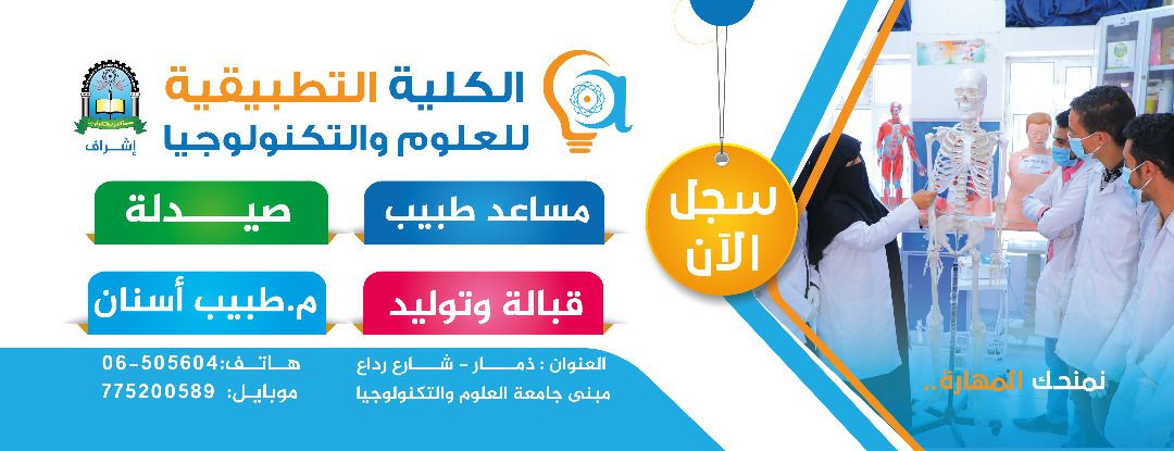 سجل الآن بالكلية التطبيقية للعلوم والتكنولوجيا – ذمار