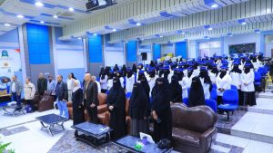 وفي الحفل الذي أقيم في فرع الطالبات بحضور عميدة الكلية د. ألفت البحري وعدد من قيادات الكلية وفرع الطالبات، ألقى رئيس الجامعة أ.د القاسم محمد عباس، كلمة هنأ فيها طالبات الدفعة 28 على قرب موعد تخرجهن “حيث لم يتبقى لهن سوى أيام قليلة لاجتياز الامتحانات النهائية”، متمنياً لهن مستقبلاً مشرقاً واعداً بالخير والعطاء.