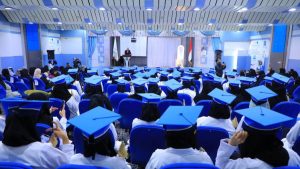 ودعا رئيس الجامعة الخريجات إلى مواصلة الدراسات العليا، مشيراً إلى فتح الجامعة كافة التخصصات في مجال طب الأسنان وتمتلك الكادر الأكاديمي المتفرغ والمؤهل ولديها بنية تحتية متكاملة وإعتماد أكاديمي وطني وإقليمي ودولي، مضيفاً: نعدكم بتقديم الأفضل خلال العام المقبل إن شاء الله لتحسين الظروف التعليمية وحل الإشكالات إن وجدت.