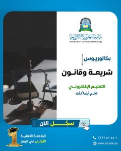 ابدأ رحلتك الأكاديمية والتحق ببكالوريوس شريعة وقانون بجامعة العلوم والتكنولوجيا 🎓
