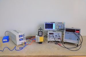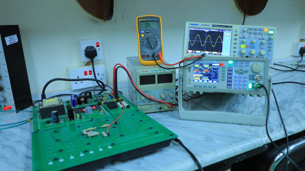 قياس كفاءة جهاز مزيل الرجفان ومعايرته حسب المعايير العالمية (Time Charge, Current, Volt, Joule). القيم تظهر في شاشة LCD ويمكن عرضها باستخدام Oscilloscope.