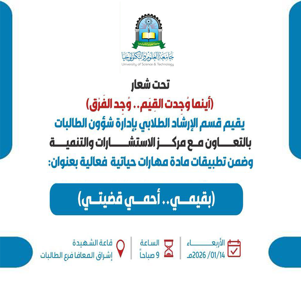 مواقع جامعة العلوم والتكنولوجيا > فرع الطالبات > Events > اعلانات