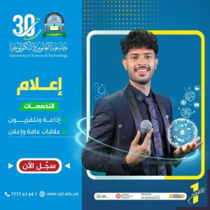 مواقع جامعة العلوم والتكنولوجيا > كلية العلوم الانسانية والاجتماعية > Events > اعلانات كلية العلوم الانسانية والاجتماعية > اعلانات > سجل الان في برنامجي الاعلام (بكالريوس إذاعة وتلفزيون – بكالريوس علاقات عامة وإعلان )