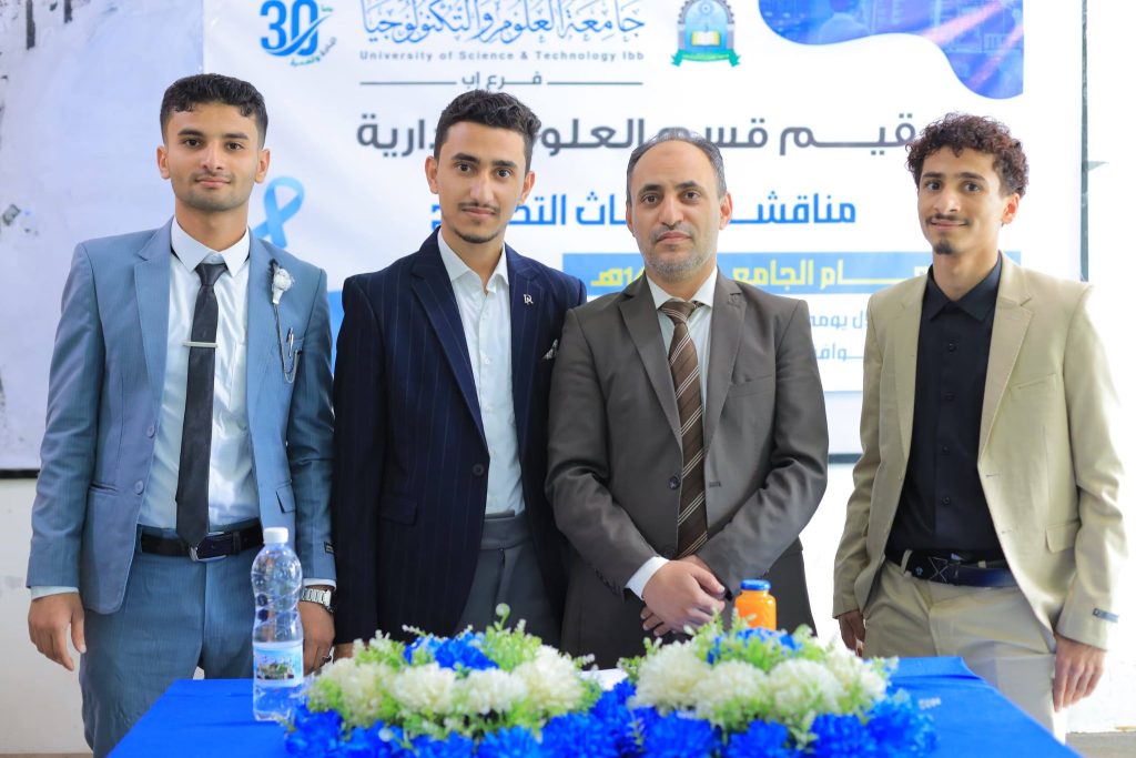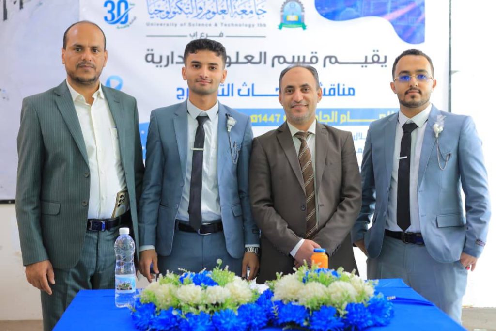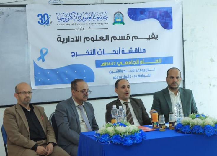 في أجواء أكاديمية حافلة بالتميز، دشّن قسم العلوم الإدارية بجامعة العلوم والتكنولوجيا – فرع إب مناقشة أبحاث التخرج لطلبة برنامج المحاسبة للعام الجامعي 1447هـ (2025–2026م)، وذلك ضمن فعاليات الأسبوع العلمي الذي ترعاه الجامعة، تأكيدًا على التزامها بتعزيز البحث العلمي والارتقاء بجودة التعليم.
