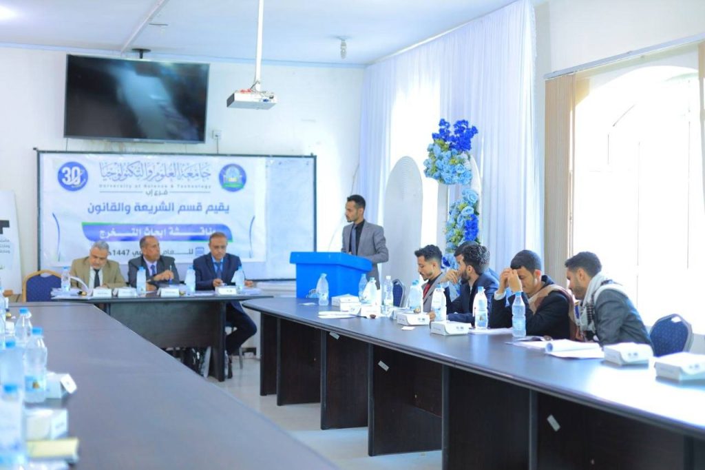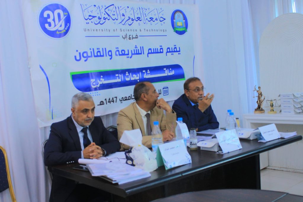 اختُتمت مناقشة أبحاث التخرج جامعة العلوم والتكنولوجيا إب لقسم الشريعة والقانون