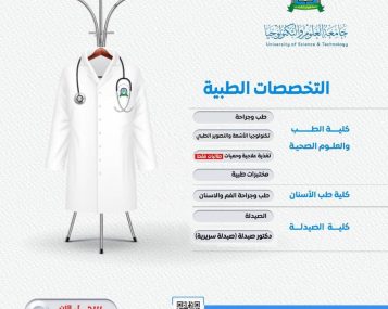 فمرحبا بكم جميعا طلاباً جدداً في السنة الأولى أو في سنوات متقدمة في العام الدراسي الجديد (1446هـ، 2024-2025م) في قلعة التعليم الطبي والصحي كليتكم كلية النخبة الطبية كلية الطب والعلوم الصحية بجامعة العلوم والتكنولوجيا متمنياً لكم عاماً دراسياً سعيداً حافلاً بالنجاح والتفوق.