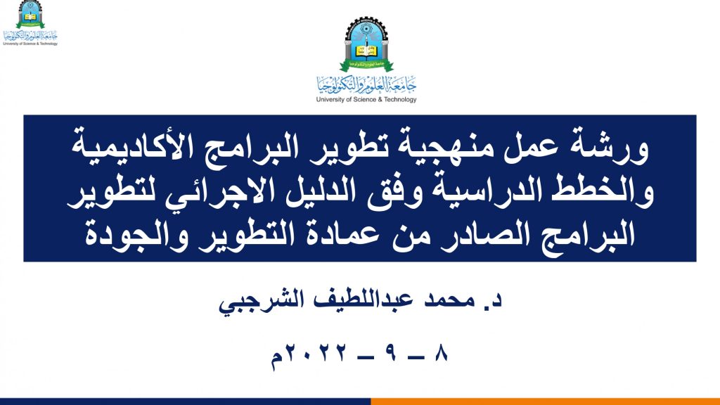 أقيمت ورشة عمل منهجية تطوير البرامج الأكاديمية والخطط الدراسية وفق الدليل الاجرائي لتطوير البرامج الصادر من عمادة التطوير…
