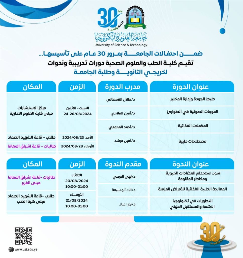 اعلانات نتائج امتحان المفاضلة للمتقدمين في برنامج بكالوريوس الطب والجراحة (الدفعة الأولى)للعام الجامعي 2025/2024م تهانينا لجميع الطلاب المقبولين…