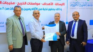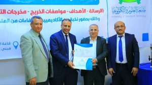 وقد تضمن جدول أعمال الورشة مراجعة وإقرار رسالة وأهداف البرنامج ومواصفات الخريج ومراجعة هيكل البرنامج.