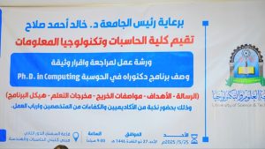 وفي افتتاح الورشة، أكد رئيس الجامعة د.خالد أحمد صلاح، على أهمية الورشة في تحديد أهداف ومعايير وتطوير برنامج دكتوراة الحوسبة، مشيراَ إلى أن جامعة العلوم والتكنولوجيا كانت السباقة في تطوير برامجها الأكاديمية وفقاً لمتطلبات الاعتماد، لضمان جودة المخرجات التعليمية وتلبية احتياجات سوق العمل.