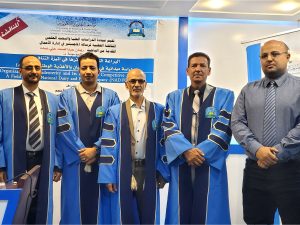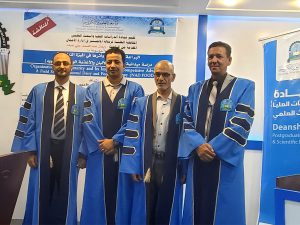 وتكونت لجنة المناقشة من أ.د. عبداللطيف مصلح محمد عايض أستاذ إدارة الأعمال بجامعة العلوم والتكنولوجيا المحكم الداخلي رئيساً و أ.د. علي صالح علي الأعجم أستاذ إدارة الأعمال المشارك بجامعة الحديدة المشرف على الباحث عضواً و د. العزي سعد فارع الحطامي أستاذ إدارة الأعمال المساعد بالجامعة الوطنية المحكم الخارجي عضواً ً.