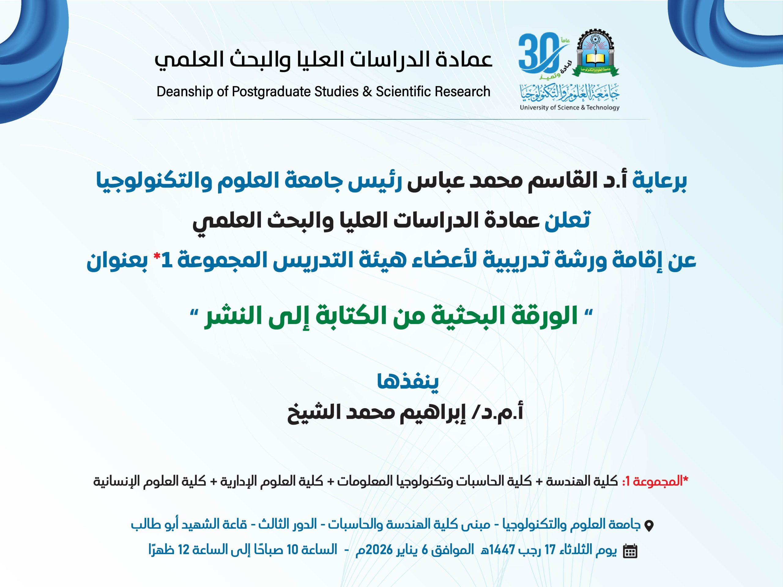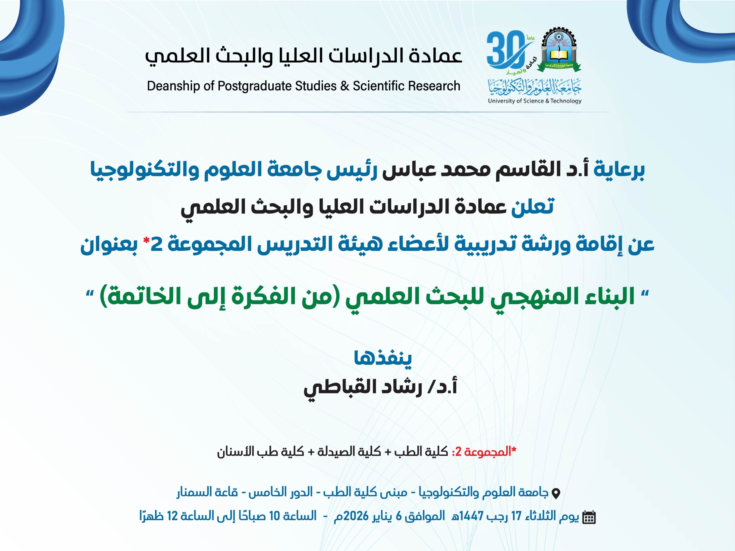 مواقع جامعة العلوم والتكنولوجيا > عمادة الدراسات العليا والبحث العلمي > Events