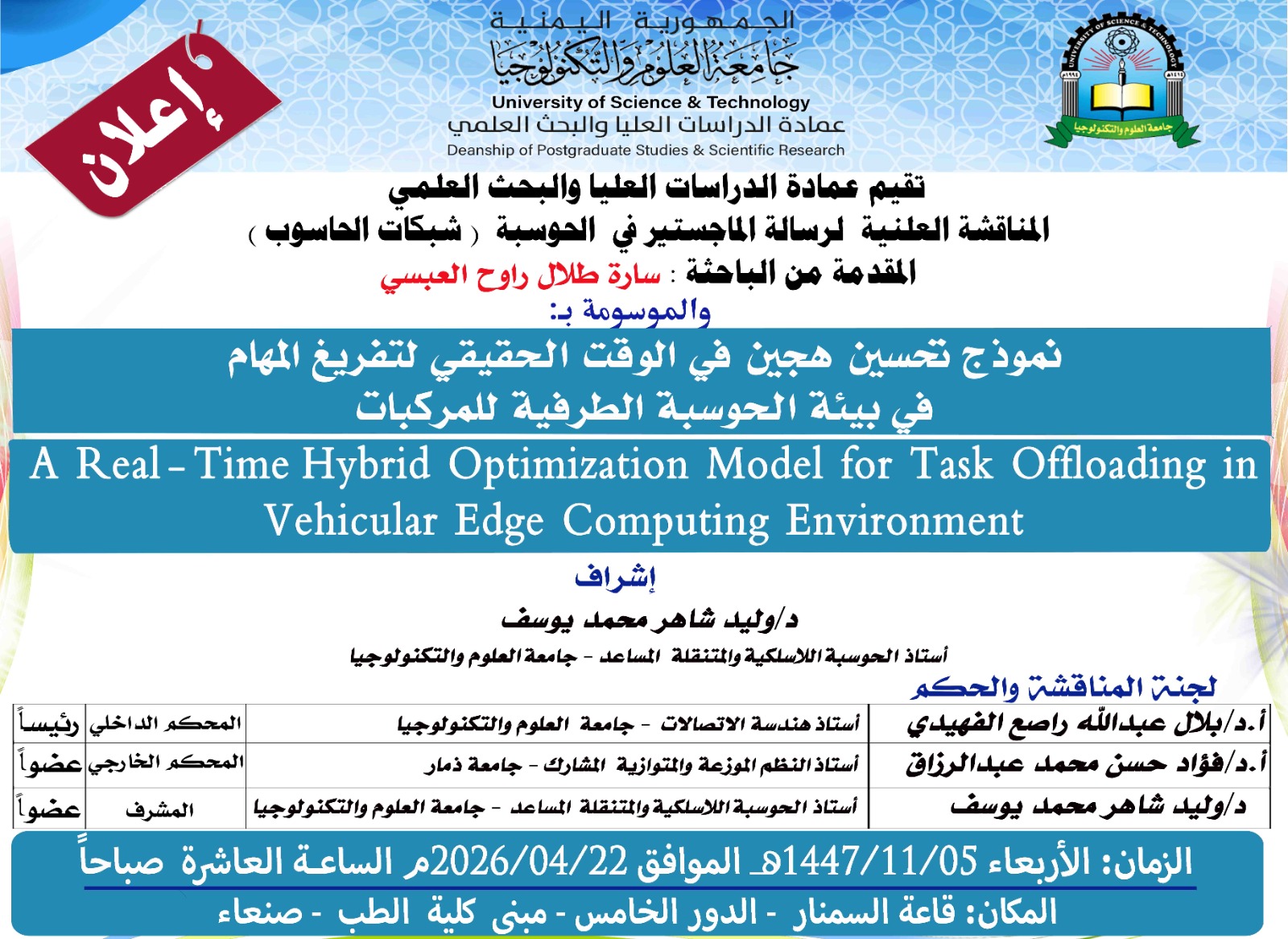 #تميز_باختيارك والتحق بـ ماجستير #دراسات_إسلامية بعمادة الدراسات العليا والبحث العلمي جامعة العلوم والتكنولوجياللمزيد من المعلومات يرجى زيارة عمادة الدراسات العليا والبحث العلمي بالجامعة.العنوان: صنعاء- الستين الشمالي، مبنى كلية الطب والعلوم الصحية،…