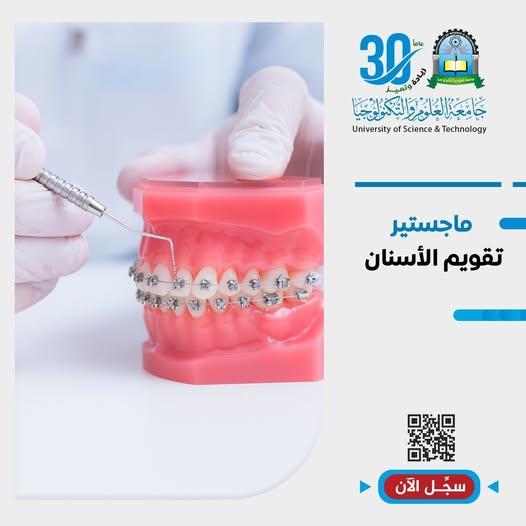 تقدم كلية طب الأسنان بجامعة العلوم والتكنولوجيا برنامج الماجستير في تقويم الأسنان، المصمم للبناء على تجربة الطالب في مرحلة البكالوريوس. بدأ البرنامج بالتعاون مع كلية طب الأسنان بجامعة طنطا في مصر، وذلك في الفترة من 2008 إلى 2012، حيث تخرجت دفعتان (حوالي 30 طالبًا في تخصصات مختلفة في طب الأسنان). ثم واصلت كلية طب الأسنان تطوير البرنامج، وتخرجت دفعتان أخريان (حوالي 40 طالبًا في تخصصات مختلفة في طب الأسنان). ويهدف البرنامج إلى تعزيز مهارات التفكير النقدي والبحث لدى الطلاب، وتحسين نتائج الرعاية الصحية، وحل مشكلات طب الأسنان المجتمعية. وقد تم تحديد هذا البرنامج الآن كتخصص واحد (تقويم الأسنان).