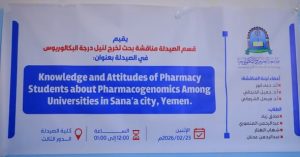 – المجموعة الثانية ناقشت بحثاً بعنوان: “معارف ومواقف طلاب الصيدلة تجاه علم الصيدلة الجينية بين جامعات مدينة صنعاء”، وهدف البحث إلى تقييم مستوى المعرفة والوعي لدى طلبة الصيدلة بمفهوم الصيدلة الجينية وأهميتها في تحسين فعالية العلاج وتقليل الآثار الجانبية، إضافةً إلى استكشاف اتجاهاتهم نحو إدماج هذا التخصص الحديث في المناهج الدراسية والممارسة المهنية المستقبلية.