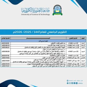 التقويم الجامعي للفصل الدراسي الأول من العام الجامعي 1447هـ الموافق 2026/2025م